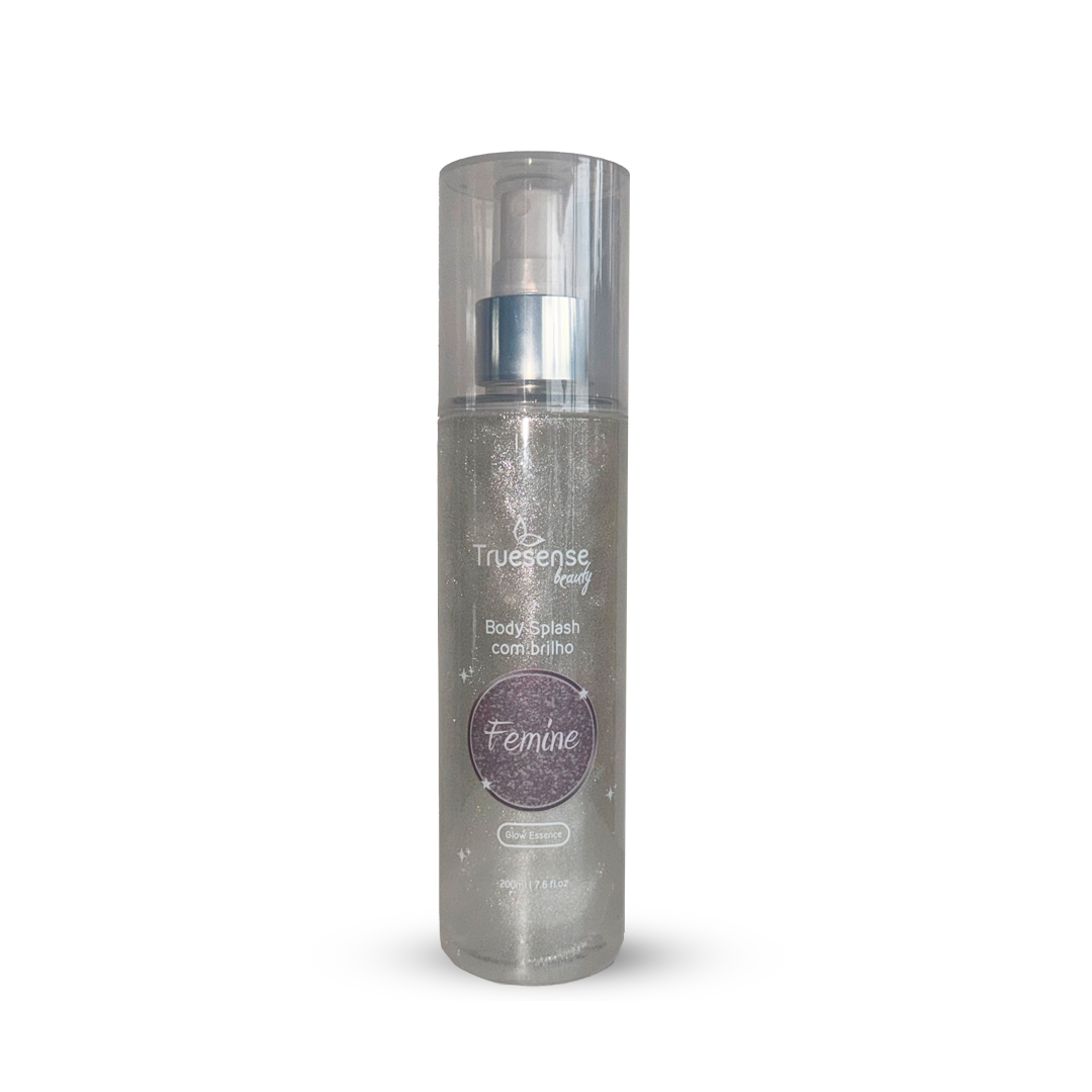 Uma fragrância floral cremosa, elegante e envolvente que perfuma a pele com sofisticação e delicadeza. O Body Splash Femine da linha Glow Essence da Truesense Beauty