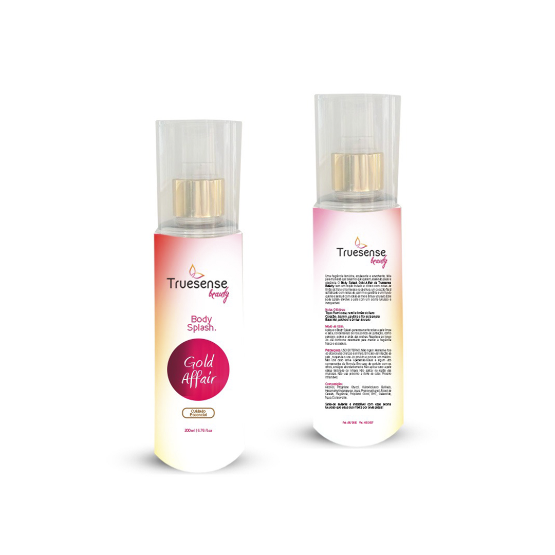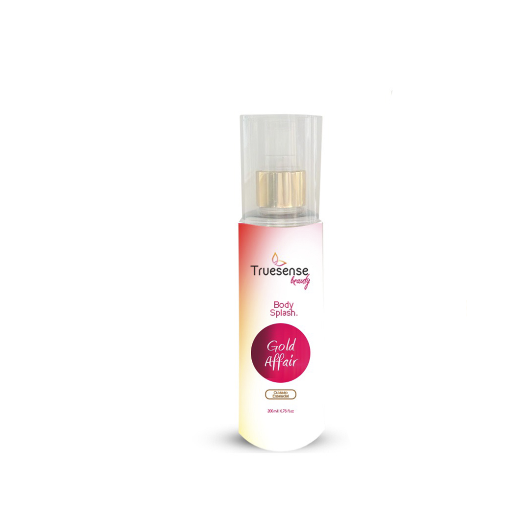 Uma fragrância feminina, exuberante e envolvente, feita para mulheres que sabem o que querem, exalando poder e elegância. O Body Splash Gold Affair da Truesense Beauty tem um toque frutado e cítrico com notas de limão siciliano e framboesa na abertura, um coração floral sofisticado com notas de jasmim e gardênia e um fundo quente e sensual com notas de mel e âmbar dourado. Este body splash envolve a pele com um aroma luxuoso e inesquecível.