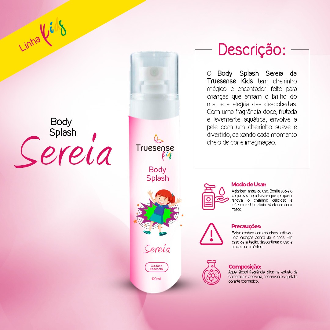 O Body Splash Sereia da Truesense Kids tem cheirinho mágico e encantador, feito para crianças que amam o brilho do mar e a alegria das descobertas. Com uma fragrância doce, frutada e levemente aquática, envolve a pele com um cheirinho suave e divertido, deixando cada momento cheio de cor e imaginação.