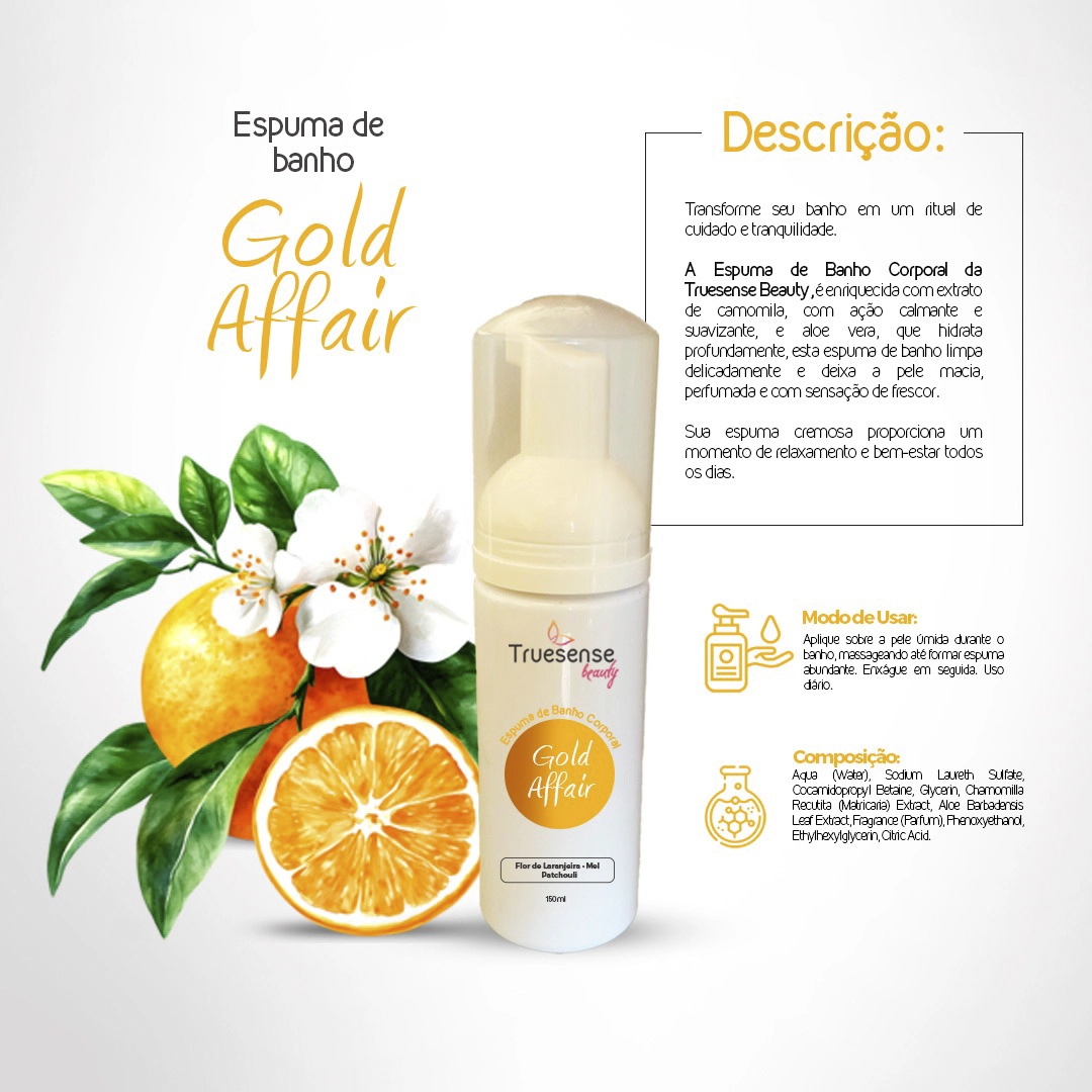 Transforme seu banho em um ritual de cuidado e tranquilidade. A Espuma de Banho Corporal da Truesense Beauty, é enriquecida com extrato de camomila, com ação calmante e suavizante, e aloe vera, que hidrata profundamente, esta espuma de banho limpa delicadamente e deixa a pele macia, perfumada e com sensação de frescor. Sua espuma cremosa proporciona um momento de relaxamento e bem-estar todos os dias.