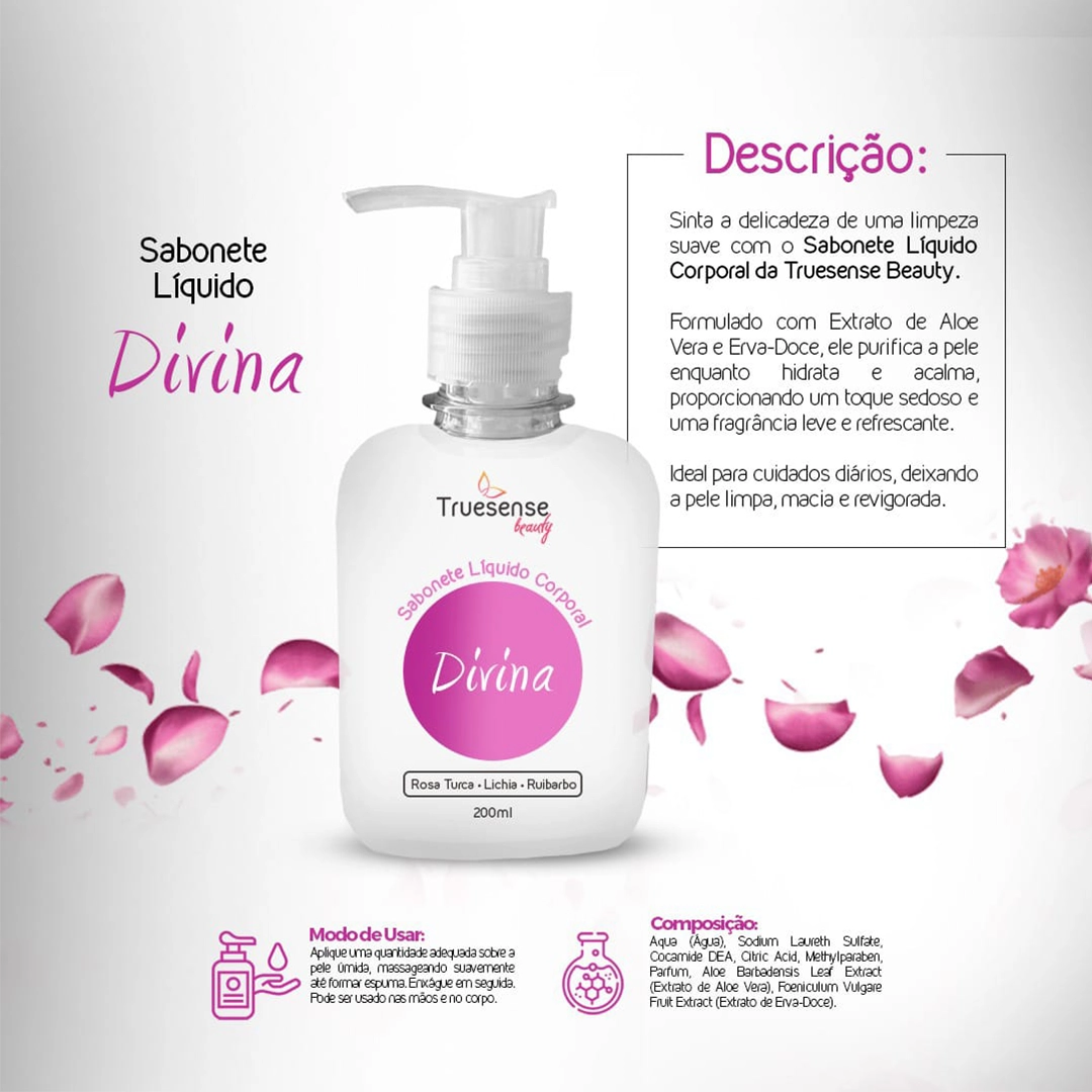 Sinta a delicadeza de uma limpeza suave com o Sabonete Líquido Corporal da Truesense Beauty. Formulado com Extrato de Aloe Vera e Erva-Doce, ele purifica a pele enquanto hidrata e acalma, proporcionando um toque sedoso e uma fragrância leve e refrescante. Ideal para cuidados diários, deixando a pele limpa, macia e revigorada.