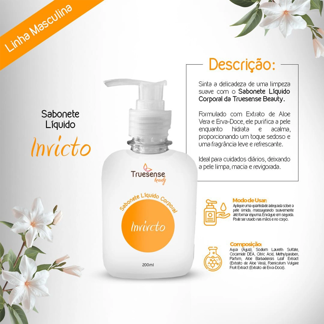 Sinta a delicadeza de uma limpeza suave com o Sabonete Líquido Corporal da Truesense Beauty. Formulado com Extrato de Aloe Vera e Erva-Doce, ele purifica a pele enquanto hidrata e acalma, proporcionando um toque sedoso e uma fragrância leve e refrescante. Ideal para cuidados diários, deixando a pele limpa, macia e revigorada.